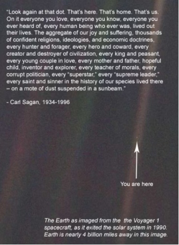 And this future return need not be to us, but to those we love. It is to pick up the elderly lady’s shopping list when she drops it at the grocery store because we want the universe to pay it forward on our “pale blue dot” drifting in the cosmos. The world is no longer made of tiny bands of Dani who can massacre each other without anyone noticing. It is now a global community: our fates are aligned.