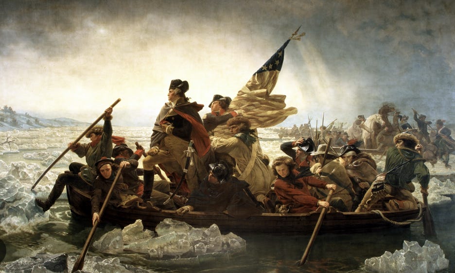 It is crossing the Delaware at the mercy of pitch black night, and then rain and then sleet and then snow as temperatures drop and floating ice blocks ram your overburdened raft, and to do it shoeless because your Army was penniless, and then slaughtering the German mercenaries you were hunting down. Washington made the night's password “victory or death” – not “defeat or life” – to match the mental state of his men with the do-or-die elements.